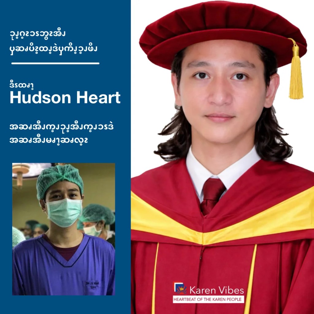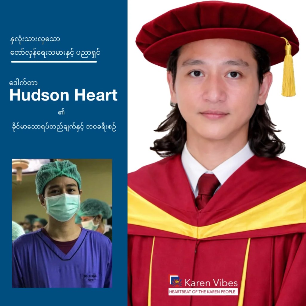 ဒေါက်တာ Hudson Heart သည် ၂၀၂၁ ခုနှစ် အာဏာသိမ်းမှုမတိုင်ခင်ကတည်းက ဆေးပညာလောကတွင် အဆင့်မြင့်လှသော Urology Doctorate (ဆီးနှင့် ကျောက်ကပ်ခွဲစိတ်အထူးကု ဘွဲ့) ကို သင်ယူပြီးမြောက်ခဲ့သူဖြစ်သည်။ သို့သော် အာဏာသိမ်းစစ်ကောင်စီ၏ လက်အောက်တွင် ဘွဲ့ယူရန် ငြင်းဆန်ခဲ့သည်။